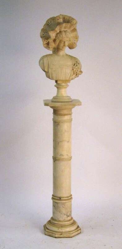 With a pierced bonnet, raised on an alabaster pedestal.