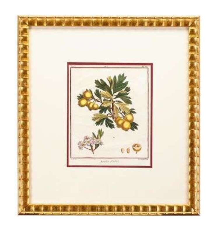 Eight framed hand-colored engravings of fruit dumonceau, paris 1768