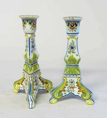 Pair of Mosanic faience candlesticks 20th century