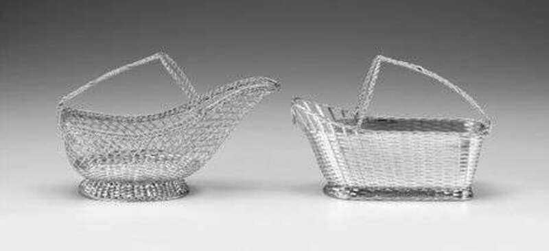 Each of woven basket form with twist handles, the first example marked Christofle, the other marked Boulenger. (2).