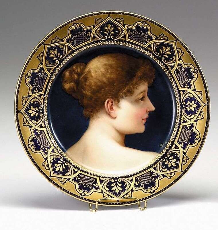 Decorated with a portrait of 'Blanche', within a gilt and cobalt border, signed Herner, pseudo blue beehive mark.