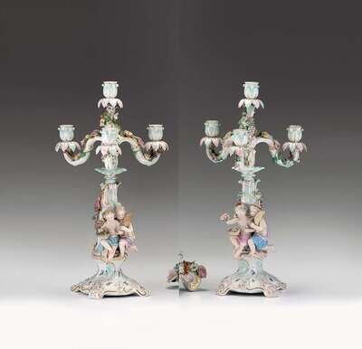 Pair of Meissen figural candelabra late 19th / early 20th century