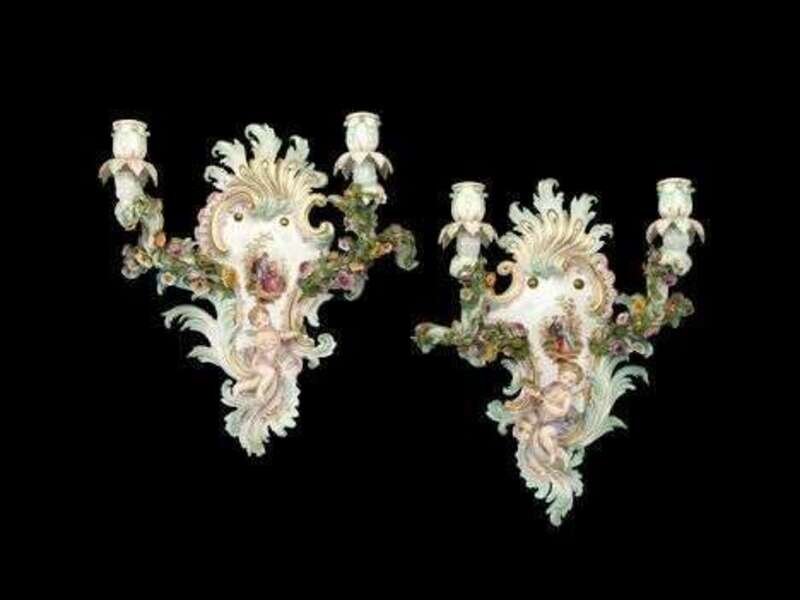 Pair of Meissen porcelain two light wall sconces early 20th century