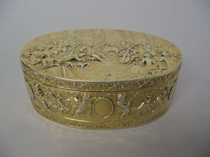 German silver gilt repousse oval box late 19th / early 20th century