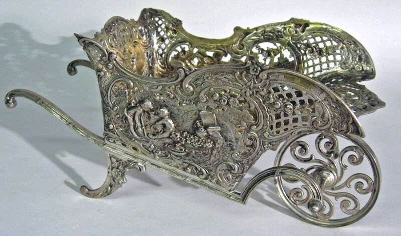German silver and silver gilt wheelbarrow early 20th century