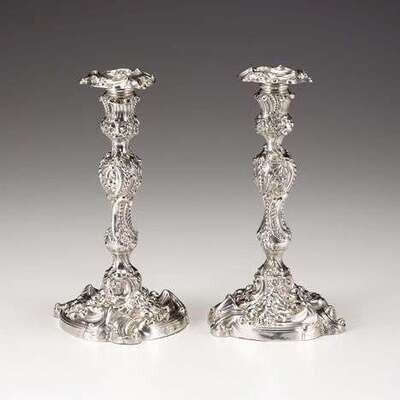 Pair of George IV sterling silver rococco revival candlesticks waterhouse, hodson & co., sheffield, 1829