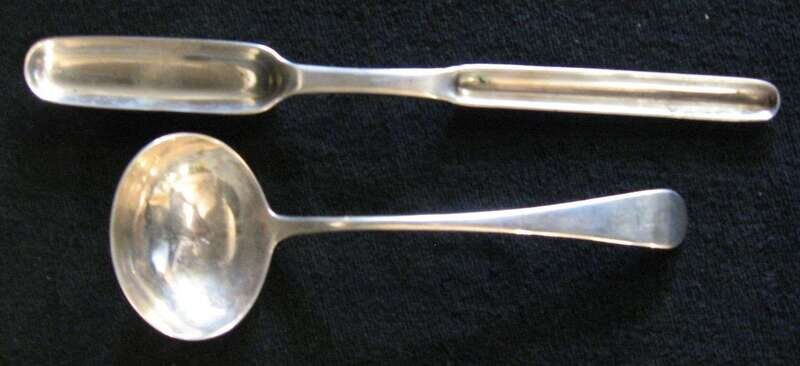 Bearing maker's mark 'RA'; together with a George III sterling silver sauce ladle, maker's mark for Richard Crossley & George Smith, London, 1810. (2).