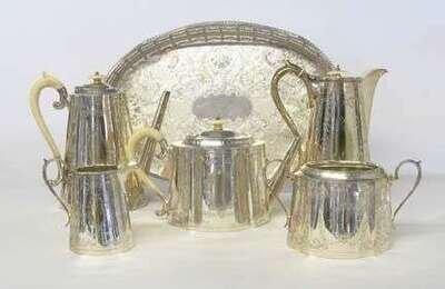 Victorian silver plate and ivory five piece tea and coffee service circa 1880