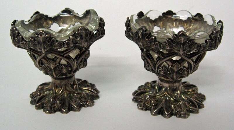 Pair of Victorian sterling silver open salts hy. wilkinson & co., sheffield, 1838
