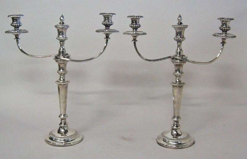 Pair of Sheffield silver plate three-light candelabra