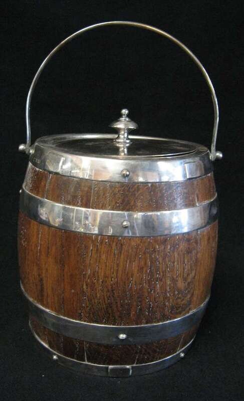 Silver plate and oak ice bucket