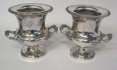 Pair of English silver plate wine coolers