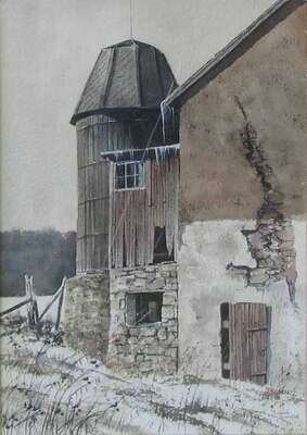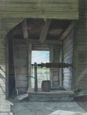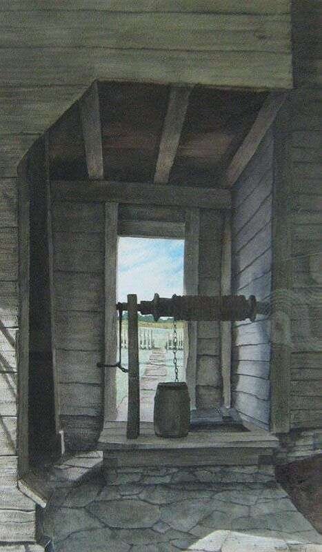 MILDRED SANDS KRATZ (AMERICAN LATE 20TH CENTURY) "THE OAKEN BUCKET AT EPHRATA CLOISTERS"
