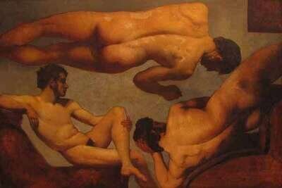 ATTRIBUTED TO WILLIAM ETTY (BRITISH 1787-1849) STUDIES OF THREE MALE NUDES