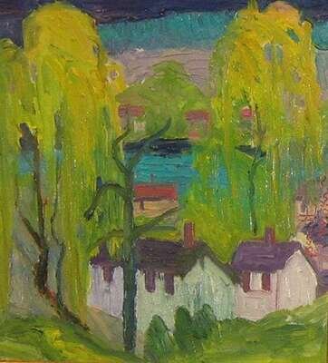 JOSEPH BARRETT (AMERICAN B. 1936) "RIVER COTTAGES, LAHASKA, PA"