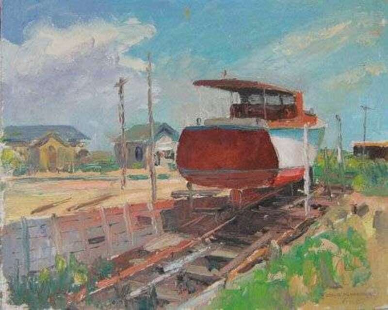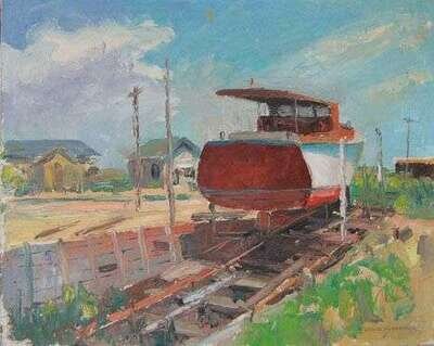 LESLIE HENDERSON (AMERICAN 1895-1988) BOAT IN DRYDOCK