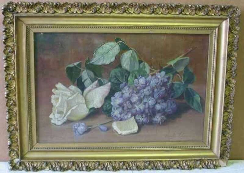 EMILY HARRIS MCGARY SELINGER (AMERICAN 1848-1927) STILL LIFE WITH WHITE ROSE AND WISTERIA