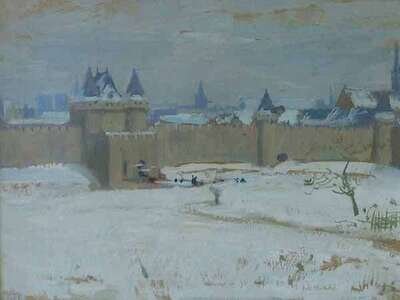 CHARLES HOFFBAUER (FRENCH/AMERICAN 1875-1957) "FRENCH VILLAGE"