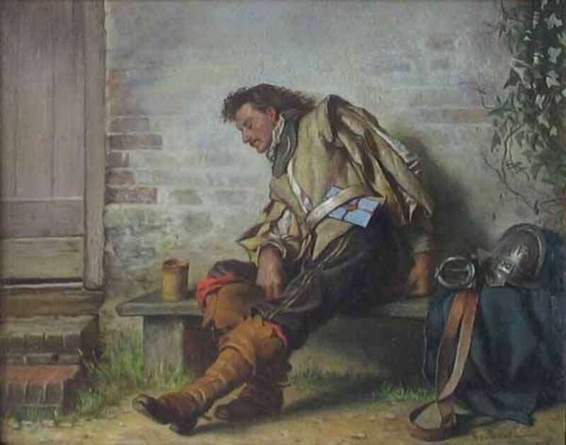 JOHN SEYMOUR LUCAS (BRITISH 1849-1923) SLEEPING MUSKETEER