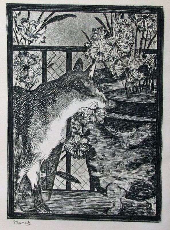 TWO PRINTSEDOUARD MANET (FRENCH 1832-1883) "LE CHAT ET LES FLEURS"