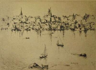 TWO PRINTSWILLIAM MEYEROWITZ (AMERICAN 1887-1981) "EARLY MORNING, GLOUCESTER"
