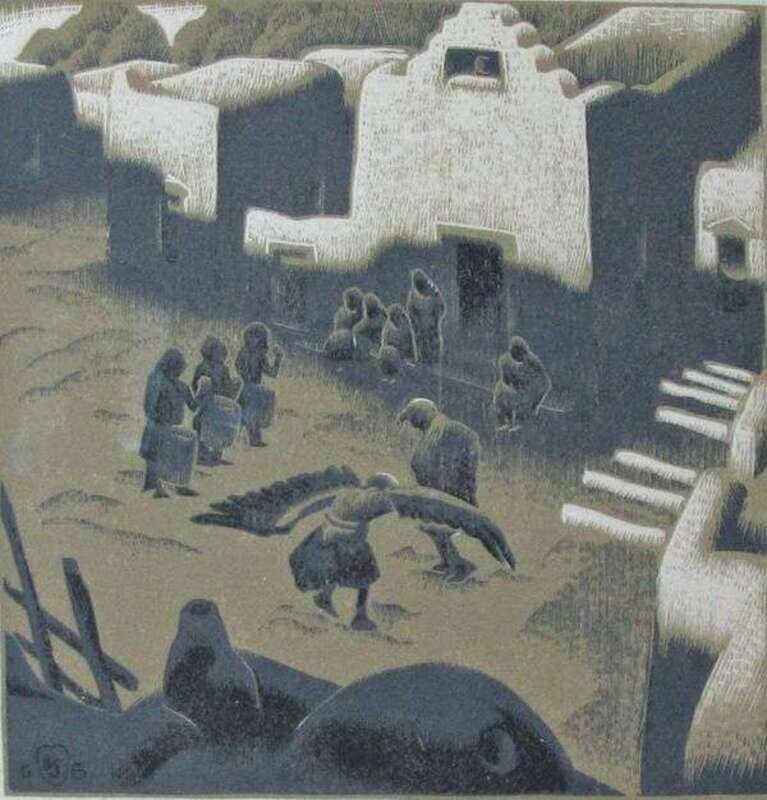 GUSTAVE BAUMANN (AMERICAN 1881-1971) "AN EAGLE CEREMONY AT TESUQUE PUEBLO"