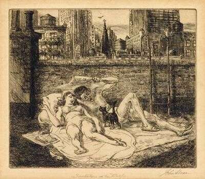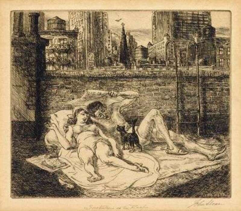 JOHN SLOAN (AMERICAN 1871-1951) "SUNBATHERS ON THE ROOF"