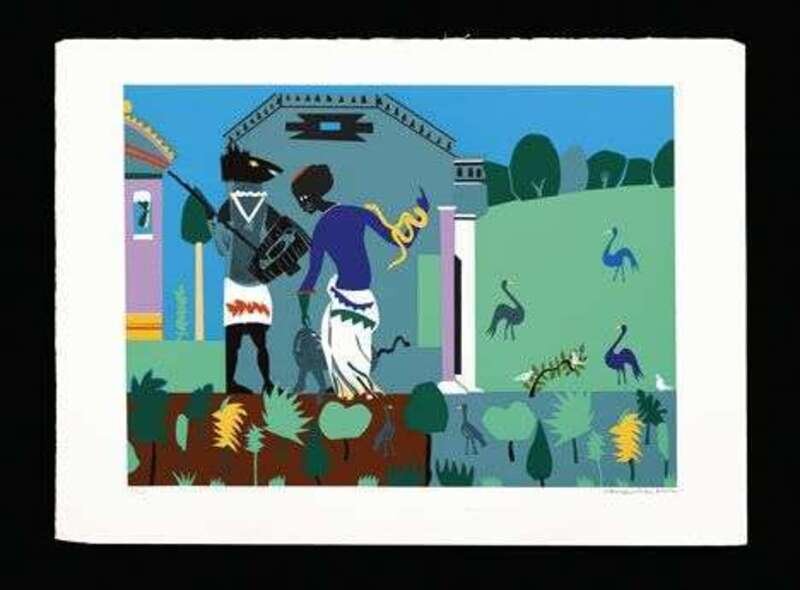ROMARE BEARDEN (AMERICAN 1911-1988)TWO COLOR SCREENPRINTS FROM THE "ODYSSEUS" SUITE OF SIX PRINTS"CATTLE OF THE SUN GOD"
