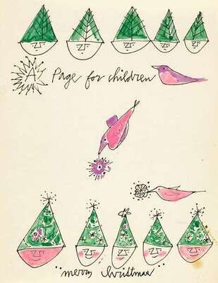 ANDY WARHOL (AMERICAN 1928-1987) "A PAGE FOR CHILDREN - MERRY CHRISTMAS"(SKETCH FOR MAGAZINE ILLUSTRATION)