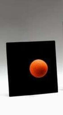 Acrylic painted sphere attached to black velvet covered board, indistinctly inscribed on label verso