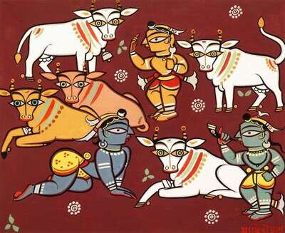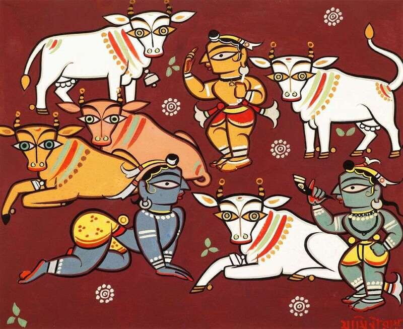 JAMINI ROY (INDIAN 1887-1972) BALKRISHNA, BALARAM AMIDST THE COWS