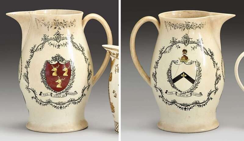 Decorated on one side with "The Arms of Deering," the reverse with "The Arms of Carver," and below the spout, with the initials "ED" enclosed by a wreath surmounting an eagle with shield with bannerette inscribed "E Pluribus Unum" .
