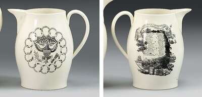 Rare black transfer-printed creamware pitcher
