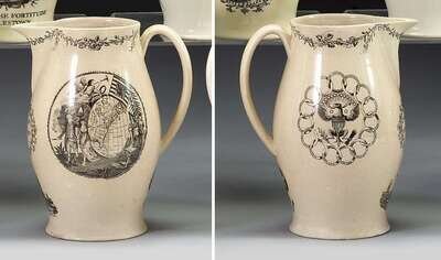 Black transfer printed creamware pitcher attributed to herculaneum pottery, early 19th century