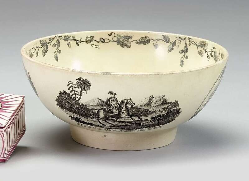 Black transfer-printed and polychromed punch bowl probably herculaneum,