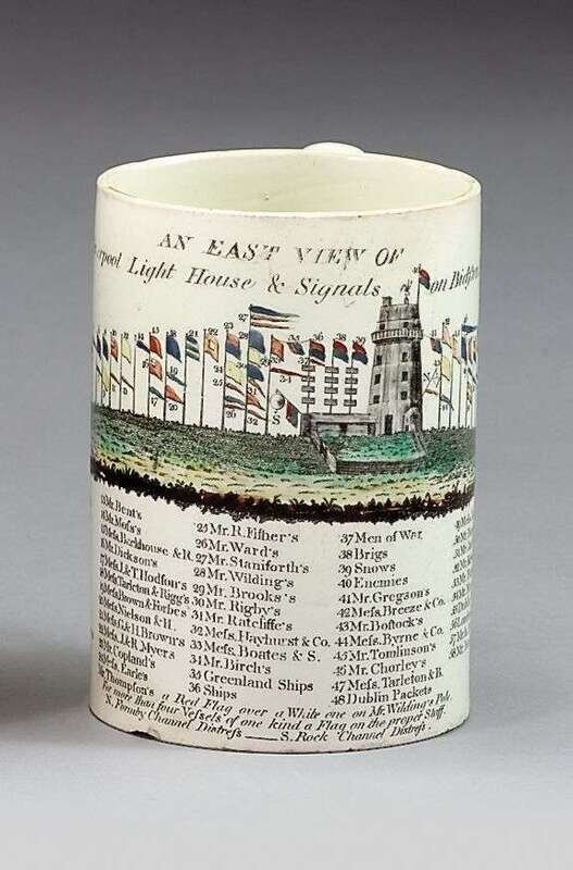 Decorated with "An East View of Liverpool Light House & Signals on Brighton Hill".