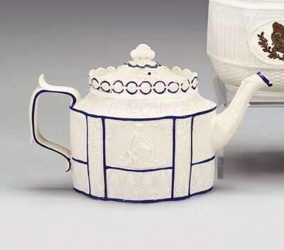 Molded salt-glazed porcelain teapot castleford, early 19th century
