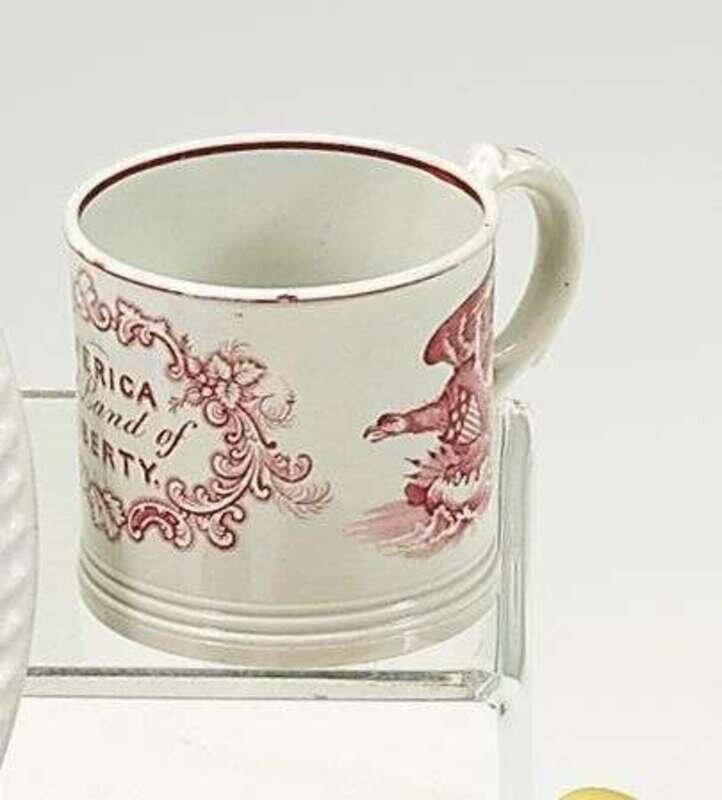 Pink transfer printed child's pearlware mug circa 1800