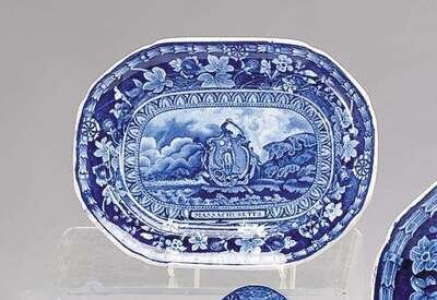 Small historical blue transferware platter thomas mayer, stoke, cliff bank works, circa 1830