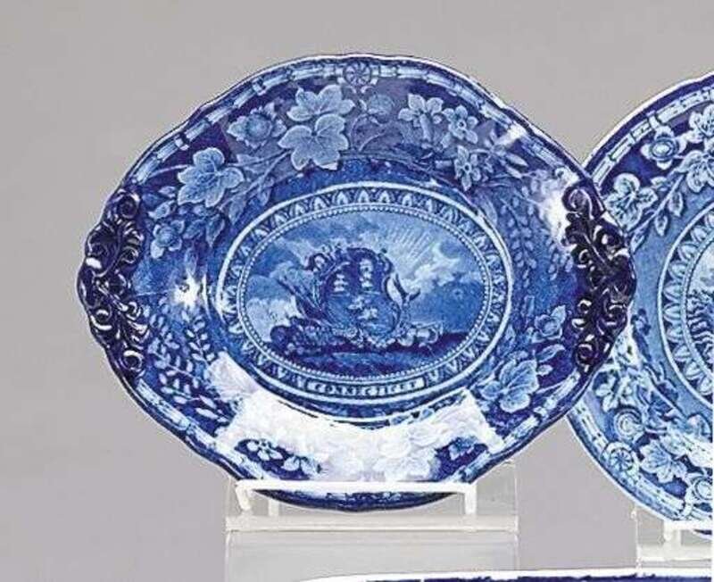 Of shaped oval form with molded handles decorated with the "Arms of Connecticut."