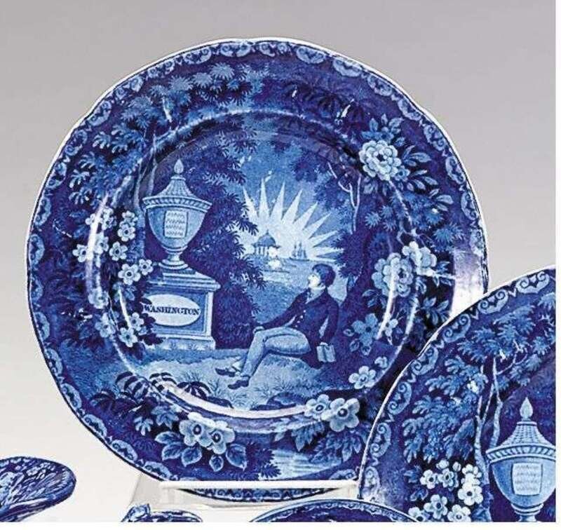 Decorated wtih "La Fayette at Washington's Tomb" (Larsen 51) within floral borders.