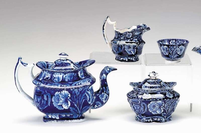 Historical blue transferware partial tea service james and ralph clews, cobridge, 1829-1836