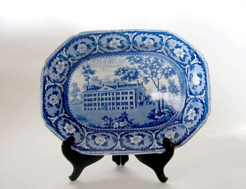Of octagonal form decorated with "Deaf & Dumb Asylum, Hartford Connecticut" (Larsen 176), from Ridgway's "Beauties of America" series, within a rose and leaf medallion border.