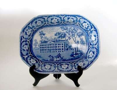 Historical blue transferware platter john & william ridgway, hanley, 1814-1830