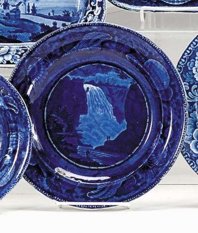 Decorated with "Fall of Mont Morenci near Quebec" (Larsen No. 52) within a shell border with circular center, impressed mark.