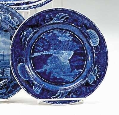 Decorated with "View of Trenton Falls" (Larsen No. 37), within a shell border with circular center, impressed mark.