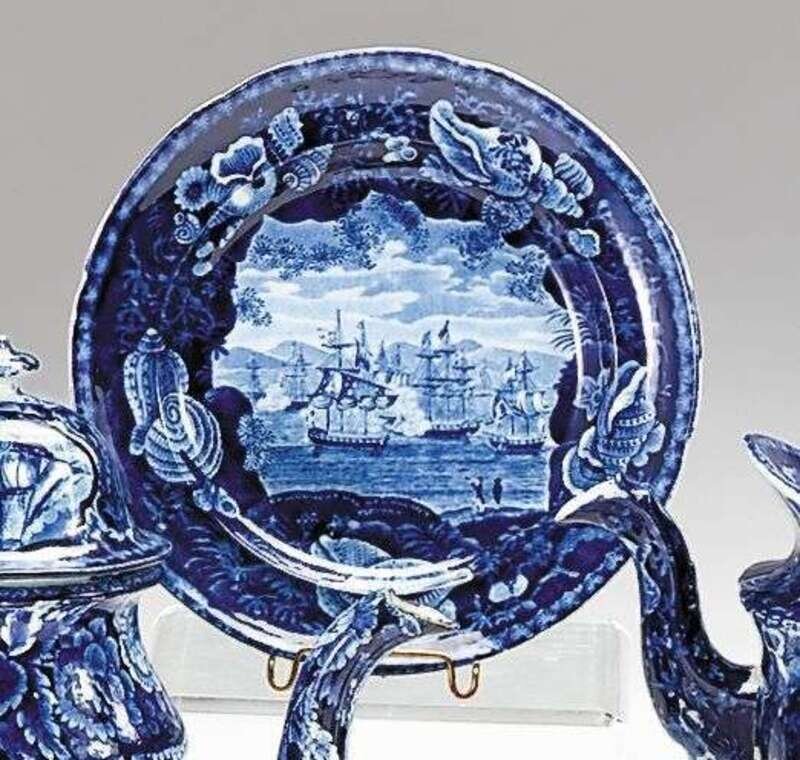 Decorated with "Commodore MacDonough's Victory" (Larsen No. 6), within a shell border with irregular center, impressed mark.