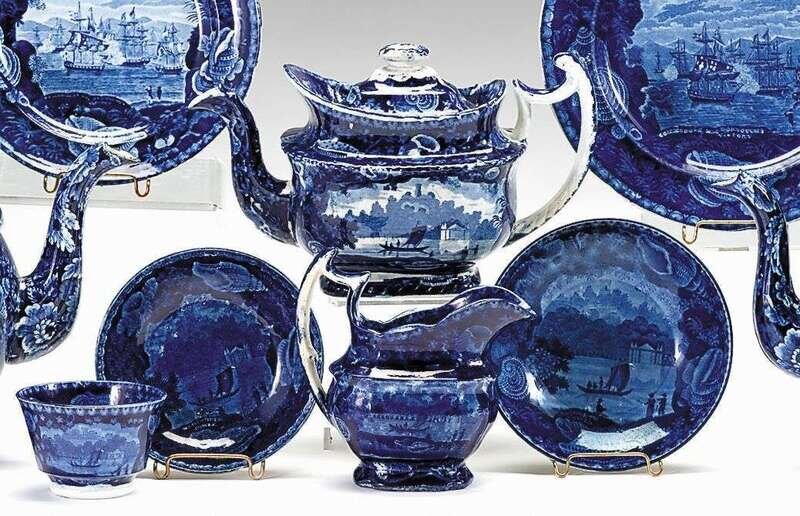 Historical blue transferware partial tea service enoch wood and sons, burslem, 1819-1846