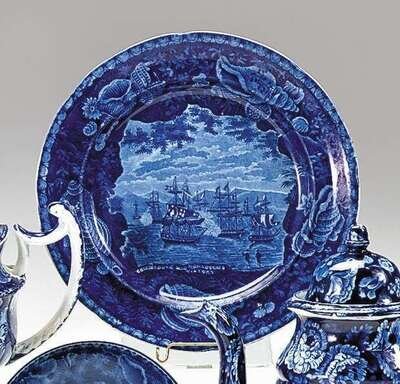 Decorated with "Commodore MacDonough's Victory" (Larsen No. 6), within a shell border with irregular center, impressed mark.