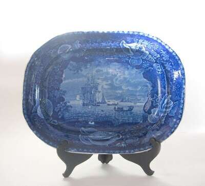 Historical blue transferware platter enoch wood and sons, burslem, 1819-1846